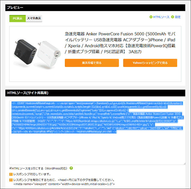 ⑤ プレビューを確認したら、ソースコードをコピー。ブログやサイトに貼り付けます。