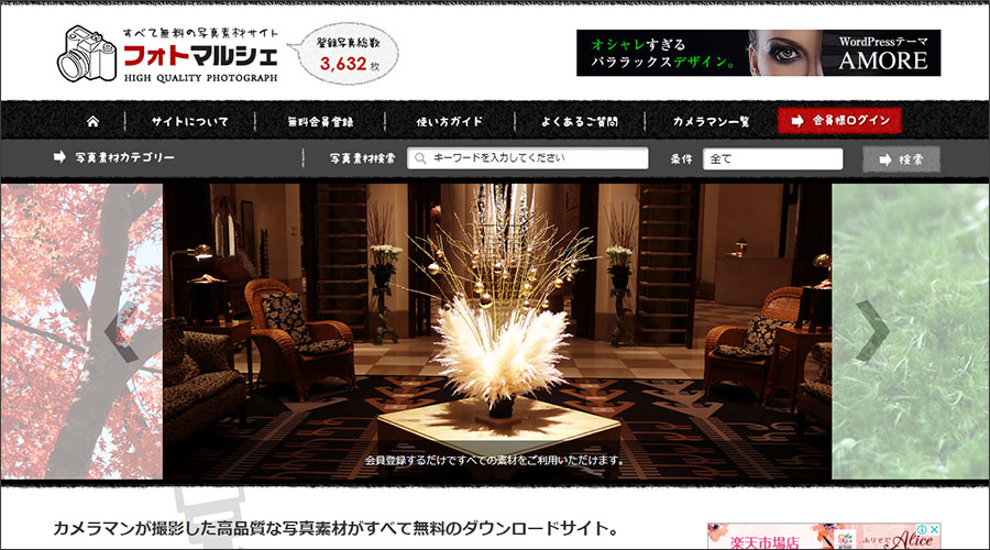 国内最大級の無料サイト。風景の写真、背景に使いやすいテクスチャ素材など、すべて無料でダウンロードができます。オリジナルの企画も盛りだくさん。