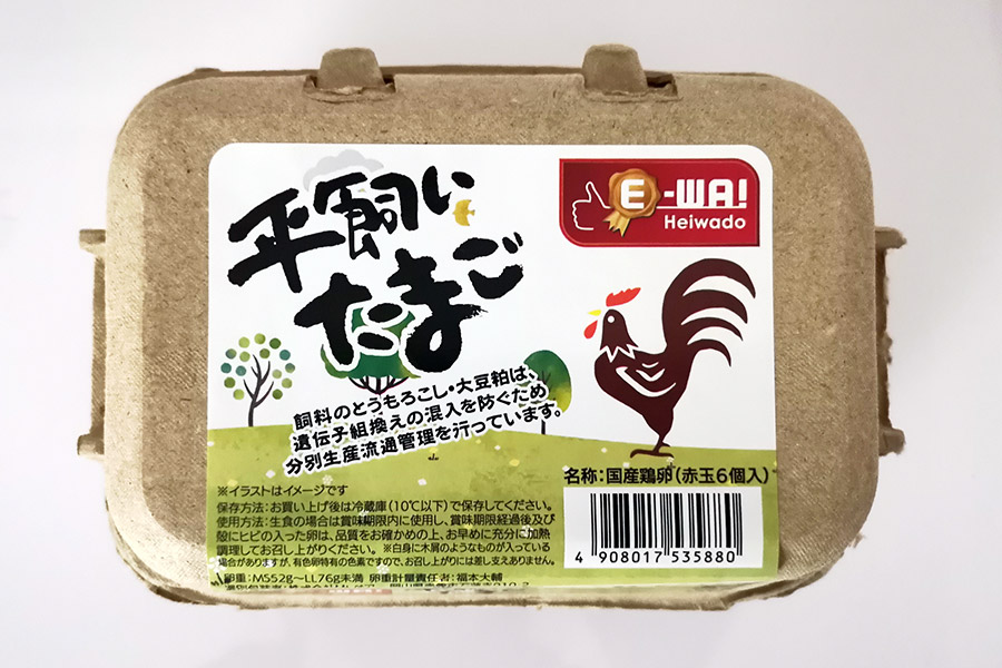 ▼平和堂さん(滋賀県を中心に関西圏にあるスーパー)のブランド「平飼いたまご」。プラスチック削減にも取り組んだパッケージになっています。うちの近くのアルプラザでは、売り切れになることもあります。