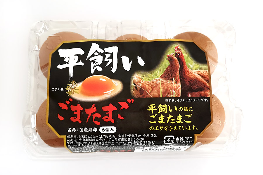 ▼名古屋・中部飼料さん「平飼いごまたまご」。ゴマを飼料にしているめずらしい農家さんです。