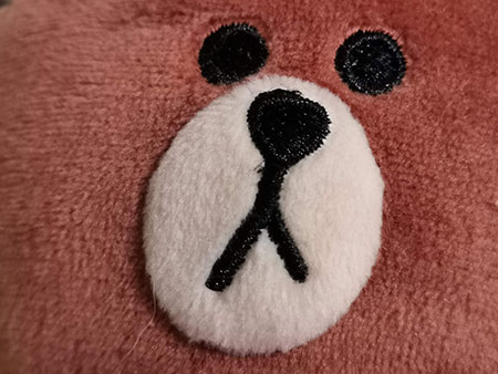 ▲ブラウンさんの顔を接写。肉眼では見えなかった埃なども見えました・・・・。4000×3000pxあります。まわりの明かりの状況・角度によっては、4cmではなく、5~6cmで合うこともあります。どちらにしてもかなり近いです。