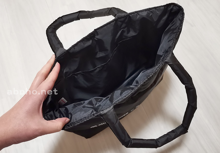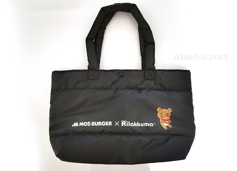今回のグッズの中で一番の目玉と思われる、ふわふわトートバッグです。想像よりもしっかりしたバッグで、サブバッグとして普段使いできそうです!!持ち手の部分も、綿が入っていてフワフワ!黒にシンプルなロゴと目立たないリラックマで、大人でも使える感じなのがいいですね。