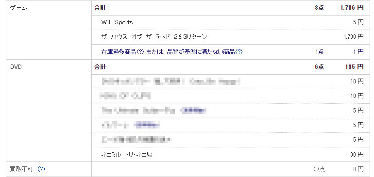 査定結果!ゲーム・DVD編