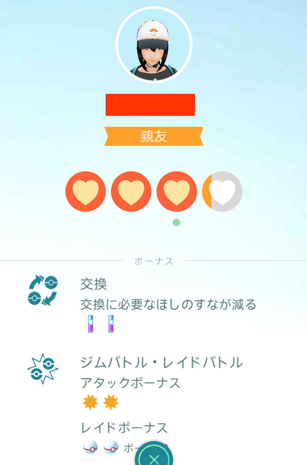 勝利後に出る結果発表の欄に親友+2の表記が。二つも多くもらえると、捕まえるチャンスが2回増えるし、出てくるアイテムも少し良くなる可能性があるそう。