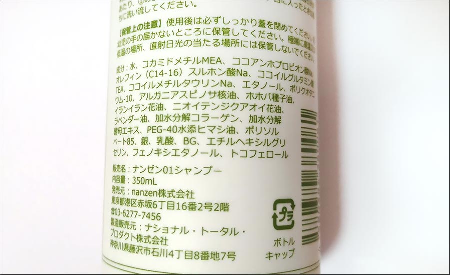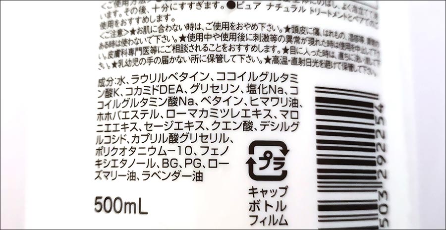 成分に少し注目していただきたいです。主要成分のラウリルベタイン両性界面活性剤とは、洗浄効果を表す成分ですが、低刺激なのに洗浄力があります。2つ目のココイルグルタミン酸kはココナツ由来の洗浄剤、コカミドDEAは泡立ちを安定させるものです。こちらは発がん性物質と言われていますが、かなりのシャンプーに入っていますし、摂取量も多くないので過剰に気にしなくていいです。主要成分だけ見ても、頭皮に悪くないシャンプーだと思います。
