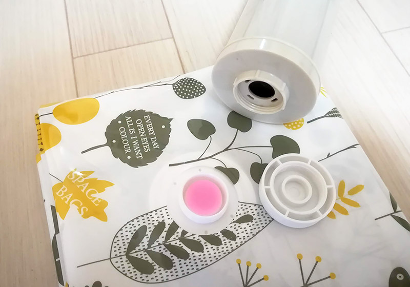 空気を抜き終わると、ポンプのレバーが重くなり、穴から空気も出なくなります。ポンプをぬいて、キャップを閉めれば完了です!