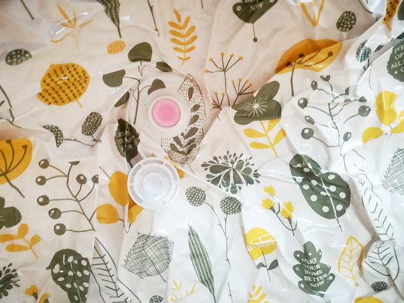 内容は、圧縮袋3枚と、ポンプです。柄が西洋風でおしゃれ!袋自体も、今まで買ったことある商品よりも厚めです。