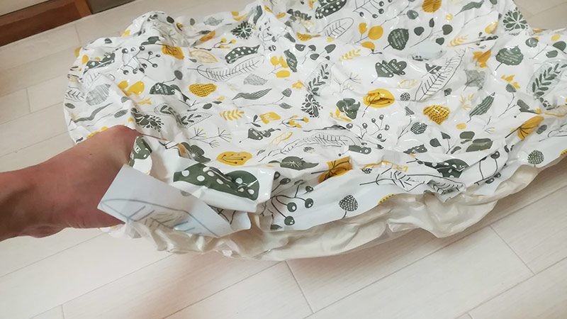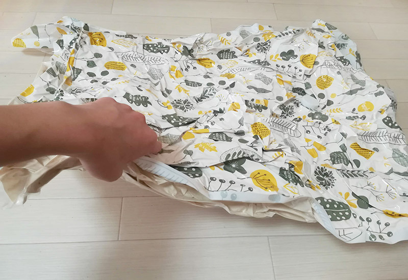 布団圧縮して密閉状態にすることで、ダニやカビの防止になります。まず私は、大型のランドリーで洗濯・乾燥してきました。さらにランドリーでは乾ききらなかったため、1日干しておきました。洗った場合は、圧縮する前に完全に中まで乾かしてくださいね。洗わない方も、天日干しをしてジメジメを取っておきましょう。